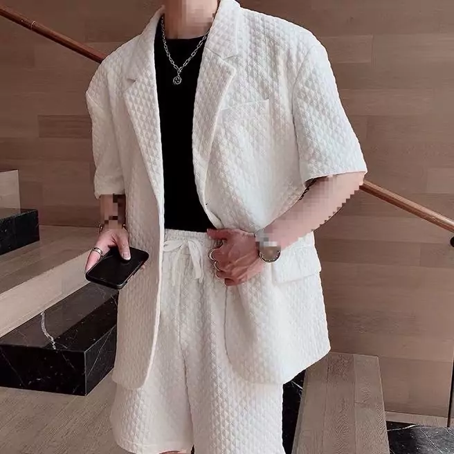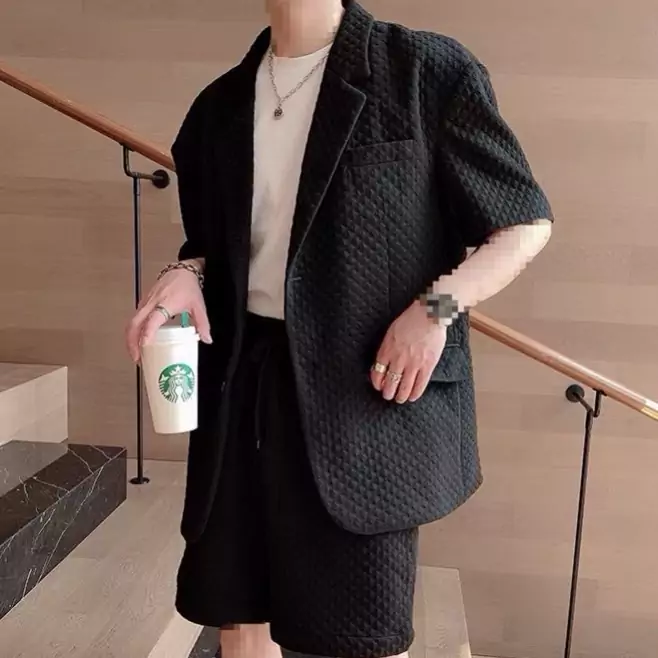 کت و شلوارک وارداتی جنس کار پفکی میباشد کت دارای یقه انگلیسی و دارای دو دکمه و دو جیب میباشد شلوارک کمر کش و از جنس پفکی میباشد